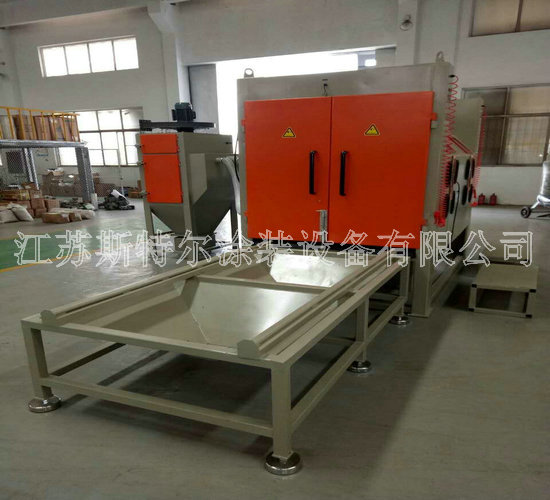 多工位手動噴砂機是我公司為上海麥鑫船舶科技四虎影视免费永久大全-四虎8848精品成人免费网站-四虎视频国产精品免费入口-四虎4hu永久免费网站影院量身定制的一款噴砂機,用于船舶渦輪增壓器、調速器的維修保養等,以提高產品表面處理的效率及質量而定制的噴砂機。該設備設計有3個操作工位,承重1噸的工作臺車架,方便對工件360度進行噴砂,該噴砂機可以實現多方位噴砂處理有效解決在噴砂加工期間的大工件無法翻面等問題,噴砂機工作室采用噴砂耐磨橡膠板雙層防護等特點提高工作倉的使用年限,照明裝置采用目前最好的LED噴砂機專用照明燈亮度及使用壽命都非常好。 除塵系統是由2濾筒和一臺2.2KW的風機組成,濾筒清洗由脈沖巡回系統反吹進行清洗。可一次性吹掃殘留在濾筒表面的微小顆粒。此脈沖控制儀采用微電腦自動化控制,只需簡單調試便可使用。噴砂室空間為4400mm*2000mm,配有4盞防爆節能燈,簡單方便的設計非常符合客戶的要求。