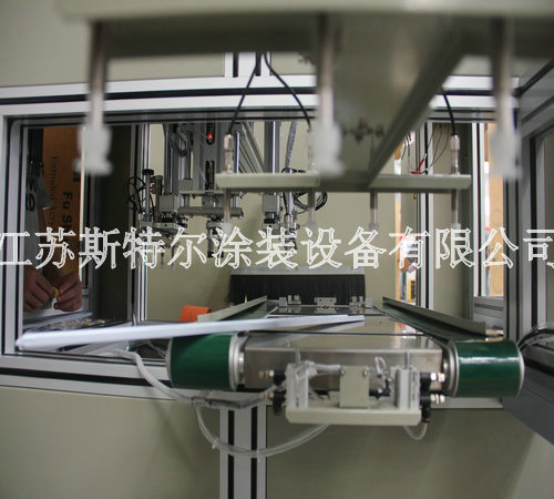祝賀我公司為OPPO新款手機外殼定制的全自動玻璃水砂自動噴砂機交付客戶!!全自動玻璃水砂自動噴砂機由自動上料機、自動噴砂機和自動下料機三大部分組成:首先由自動上料機將附有兩組Tray盤Port可自動交換,需人工放Tray盤至LD Port, Tray盤定位后,移栽Arm開始取片,玻璃整列,再由移栽Arm直接將玻璃放置在載具Stg上,送入噴砂設備,當一個Tray port 取完后,會報警提醒人員裝載新的Tray盤,當空Tray盤滿杯后設備會自動報警通知人員取走空Tray盤,以此循環動作.然后到全自動玻璃水砂自動噴砂機,由人工自行調配一定的水砂比例后設備自動進行混合攪拌,自動上料機構抓取玻璃放到輸送同步帶上,進入噴砂機腔體進行噴砂,噴砂作業結束后,進入水刀處進行噴淋,噴淋結束后由風刀進行吹干。吹干后移動至下料機移栽位置,由移栽將玻璃抓取至下料機FORK上,以此循環。噴砂、清洗、吹干區域有擋邊防止工件位移。后自動下料機將附有兩組CST Port可自動交換,需人工放空的CST至UnLD Port, CST翻轉90°后,氣缸機械定位,由移栽arm從治具上取玻璃放置Fork上,送入CST, CST Port內的基板利用Fork方式由高層開始放片,Fork 真空感知Sensor/玻璃光纖sensor OFF后,Fork自動退回到等待位置,以此循環。當CST裝滿后,設備會報警提示人員將CST取走并裝入空的CST。
