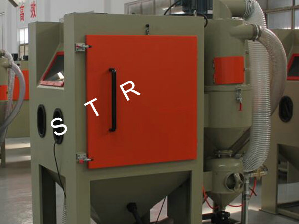 Features: Sandblasting machine is mainly used in electroplating, paint, coating area to-be-covered before piating; Old way of refurbished cleaning; Metal products and plastic, crystal, glass surface trace eliminate scattered, dumb, surface process to enhance the grade of the product's surface; Machining parts tiny burrs purify; Increase the metal surface hardness, eliminate stress such as spring, mechanical cutters, etc.; Metal and non-metai products surface etching pattern, writing and prevent slippery processing, such as marble, seals, and handle prevent slippery, etc. The machine is applied the range: applicable to small and medium-sized general of workpiece and high hardness workpieces quickly sandblasting. Such as engine fittings, valves, heat treatment workpiece, etc. This machine has novel, scientific design and reasonable structure, convenient operation, processing superior performance; Gush arenaceous speed, the impact point at deep.